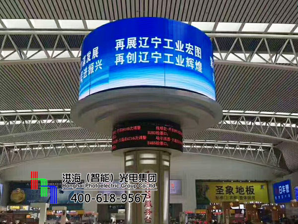 遼寧沈陽北高鐵站LED旋轉升降圓柱屏