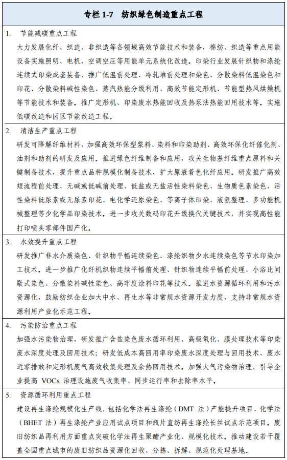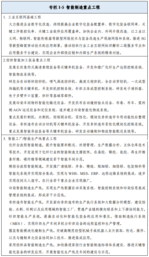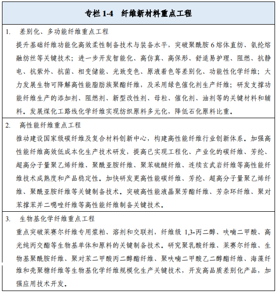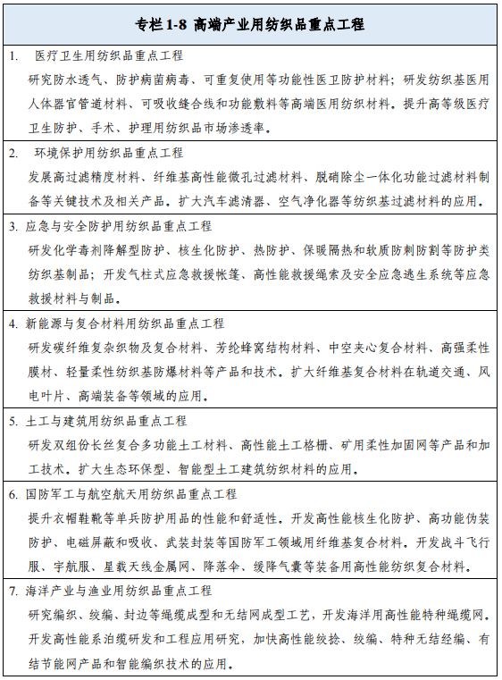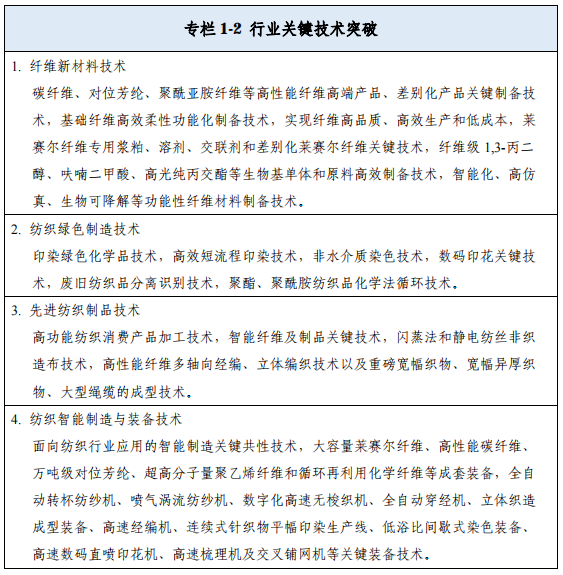 在纖維新材料、智能制造、時尚建設、綠色制造、高端產業用紡織品共五個領域實施一系列重點工程,具體落實“十四五”時期實施轉型升級高質量發展的重點任務。