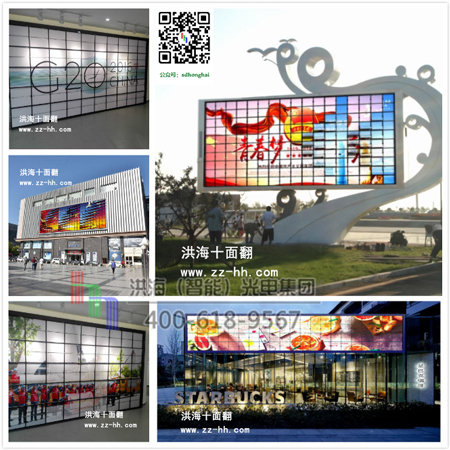 機(jī)械翻頁(yè)十面翻告別了傳統(tǒng)的機(jī)械傳動(dòng),取而代之是數(shù)控智能控制系統(tǒng)的應(yīng)用,化腐朽為神奇,以其波瀾壯闊的新奇和動(dòng)感效果橫空出世,在視覺(jué)疲勞中給人以清新、懷舊但又與眾不同的視覺(jué)感受。好的元素用于建筑、裝飾、場(chǎng)館、舞臺(tái)和戶(hù)外廣告,讓建筑動(dòng)起來(lái),就會(huì)賦予靈魂和創(chuàng)意,帶來(lái)更多價(jià)值。 創(chuàng)意無(wú)止境,廣告無(wú)邊界,洪海光電集團(tuán)帶您進(jìn)入時(shí)尚廣告前沿,來(lái)吧朋友們,與洪海共舞,打造您的財(cái)富空間?。?!