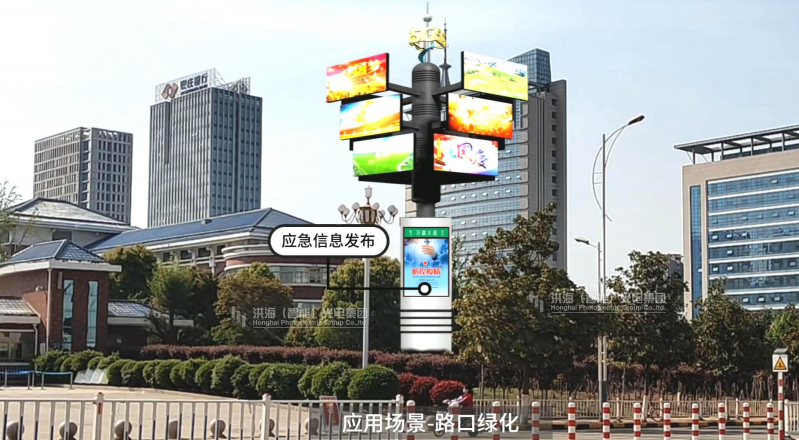 在智慧城市建設中,洪海光電集團研發(fā)團隊將原有的單一燈桿照明功能向“多桿合一”轉變,并加入各種5G廣告設計元素,不僅能美化道路環(huán)境,還能降本增效,并增加廣告投放曝光量及質量,同時也能提高市政管理效率。